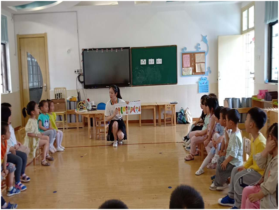 本次体验活动的另一个重要环节,是师范生进班和小朋友们面对面地进行互动交流,共读绘本。董世宇同学为小班的小朋友讲述了绘本故事《好饿的毛毛虫》,在她生动形象的讲述中一只看似丑陋的毛毛虫逐步蜕变成美丽的蝴蝶,让孩子们在惊喜愉悦的同时也感受到小董老师的亲切与温和;胡月同学用纯真、自豪的口吻给中班小朋友描绘了绘本《我妈妈》中无所不能的妈妈,并与孩子们互动讨论心目中妈妈的形象;李欣桐同学的《猴子吃西瓜》以精彩有趣的讲述、活灵活现的表演博得孩子们一阵阵欢快的笑声。在孩子们的强烈要求下,董世宇同学又给大班孩子讲述了《耳朵上的绿星星》,她抑扬顿挫的讲述语言、恰切自然的体态语以及亲切柔美的面容,引领着孩子们走进感人的故事情境中,深深地感动于萤火虫乐于助人的精神。与小朋友互动之后,戴兢兢副所长又从同学们的有声语言表达技巧、态势语如何与故事情境相协调以及讲述时必须具有的幼儿意识、现场感等方面作了指导。