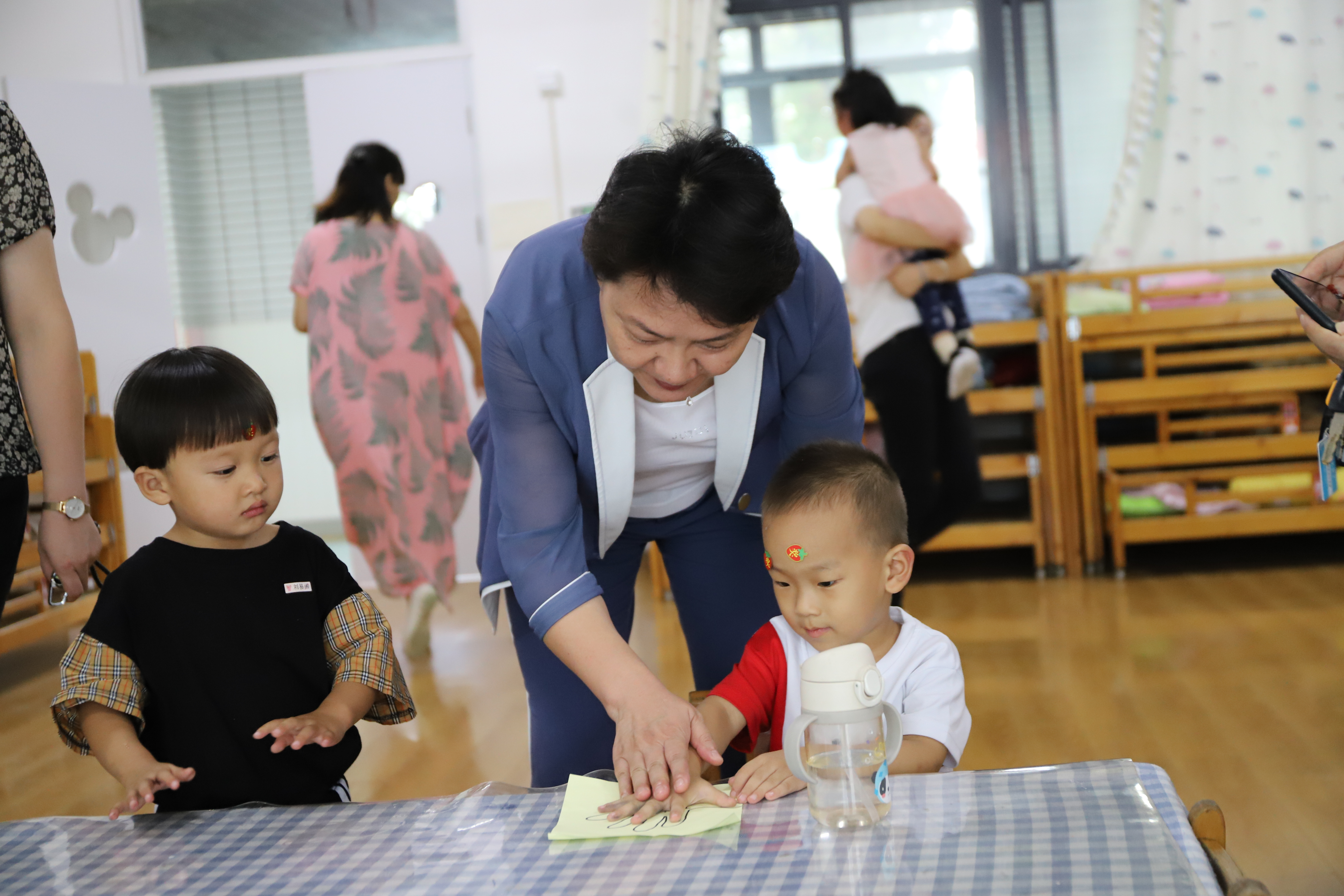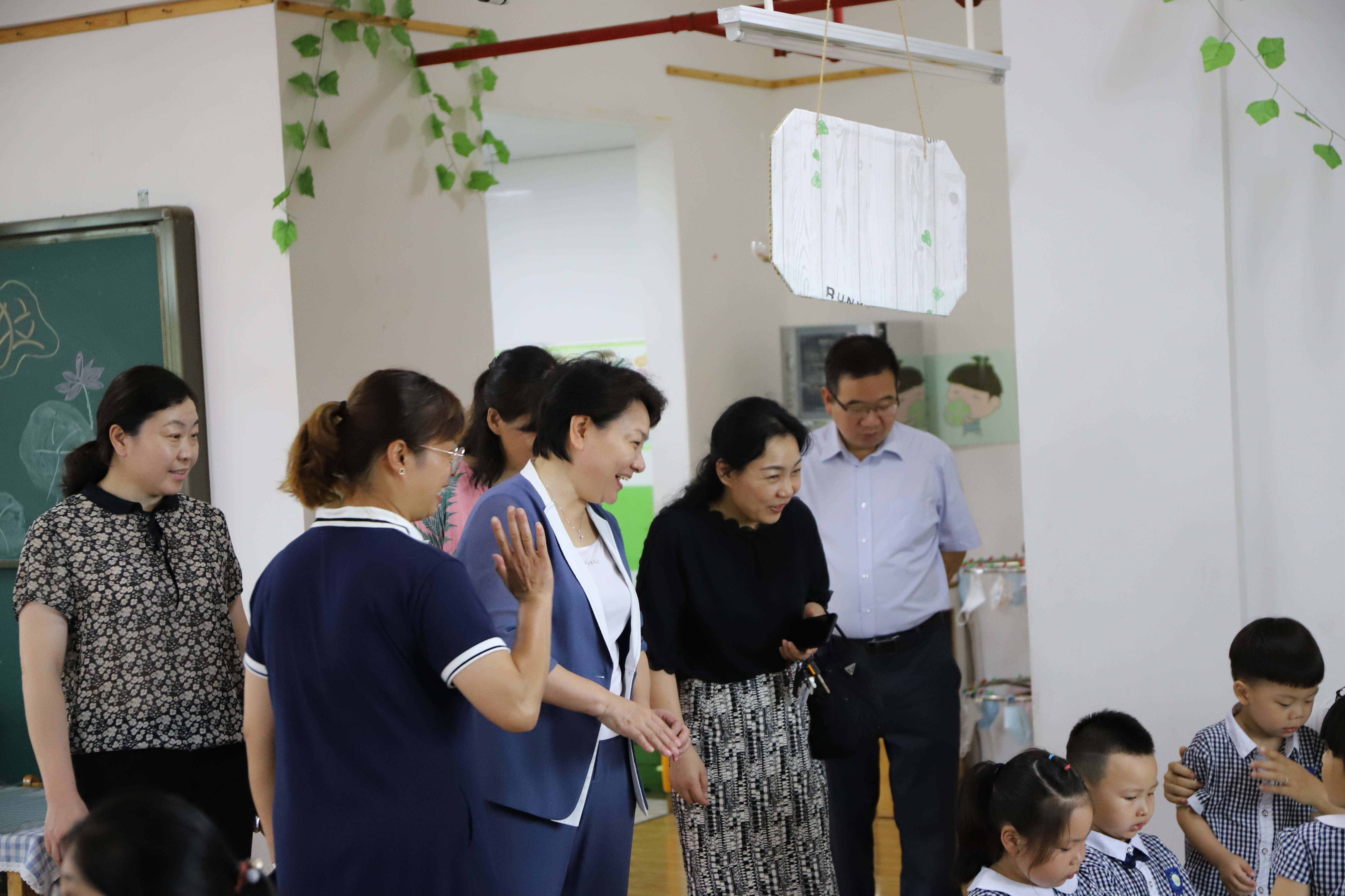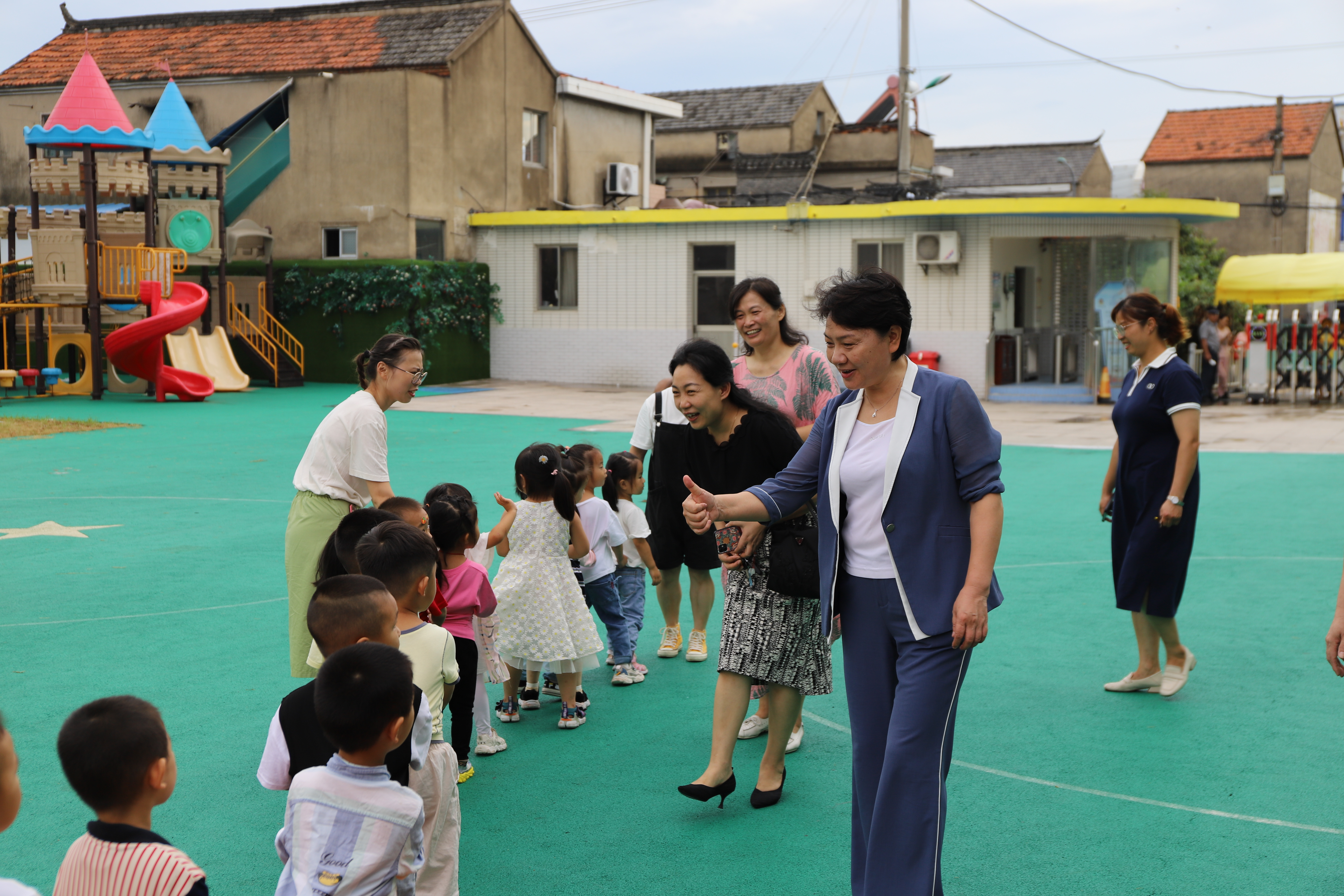 在伍佑幼儿园,刘书记一行走进班级和孩子们亲切互动观看了幼儿区域活动和户外自主游戏,并与伍佑街道相关负责人、幼儿园的园长们亲切座谈,刘书记指出,伍佑镇正面临很大的发展机遇,古镇振兴,教育更要走在发展的前列,办好伍佑幼儿园责任重大、意义重大。