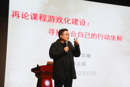 开班典礼之后,常州市新北区学前教育研究员、江苏省课程游戏化领衔人徐志国老师作题为《再论课程游戏化建设,寻找适合自己的行动坐标》的讲座。徐老师首先分享了两个“课程游戏化给幼儿园带来的变化”案例,提出“今天幼儿教育的温度在哪里”及“日常幼儿教育缺失了什么”两个教育之问,以此引导幼儿教师改变理念,树立正确的儿童观。在此基础上,从“高质量的师幼互动”“班级课程环境创设”“自我检测课程游戏化建设”等角度提出切实可行的建议,并结合常州市新北区的课程游戏化优秀案例,提出五大核心理念,提高了在场老师对课程游戏化的认识,提升其更直接、更高效的课程游戏化设计和实施能力。