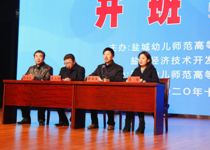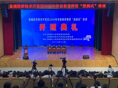 12月27日,由我校承办、学前教育研究所策划并组织实施的盐城经济技术开发区2020年学前教育师资“浸润式”培训开班典礼在北师大附属学校学术报告厅举行。盐城幼儿师范高等专科学校党委委员、副校长戴永湖,盐城经济技术开发区社会事业局局长戴亚生,副局长张杰生出席会议。会议由盐城幼儿师范高等专科学校学前教育研究所负责人肖琦主持。
