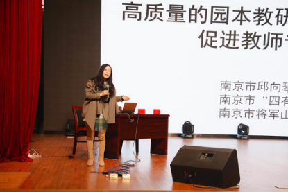 集体教学展示之后,江苏省特级教师、南京市“四有”好教师团队主持人、南京市江宁区将军山幼儿园邱向琴园长作《高质量的园本教研,促进教师专业化发展》专题分享。她结合三位老师的集体教学活动,对幼儿园教研的组织形式、研讨内容、教研计划的撰写、教研活动安排和实施等层面,给老师们作了具体的分析,从“精计划、去权威、真碰撞、重梳理、归实践”等方面对如何高质量地开展教研活动提出指导和建议。最后,以“如何进行集体活动的评价”为话题,针对之前三位老师的集体教学展示,开展现场模拟教研,激发教师对集体活动价值定位的思考,提升教师对教学的分析品评能力。