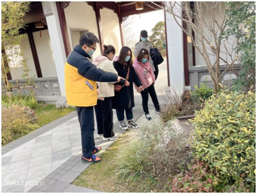 春光正好,课程资源研析正当时。根据课程游戏化实施及幼儿园队伍建设的需要,在我校学前教育研究所的指导和组织下,伍佑幼儿园的全体老师趁着大好春光,到中华海棠园进行课程资源调研和收集。老师们一路走走停停,分析、研讨,时而查阅资料,时而头脑风暴、思维碰撞,他们用手机记录下了丰富多样的实地景象,海棠园里的一花一木、一砖一瓦、一路一灯都成了老师们眼中珍贵的课程资源,为后续的班本课程建设的有效开展作了充分准备。