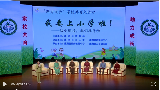 今年的活动主题是“幼小衔接,我们在行动”。建湖县教育局利用宣传月,组织开展了第五期“助力成长”家校共育大讲堂活动,我校学前教育研究所肖琦所长作为特邀专家参加了活动。