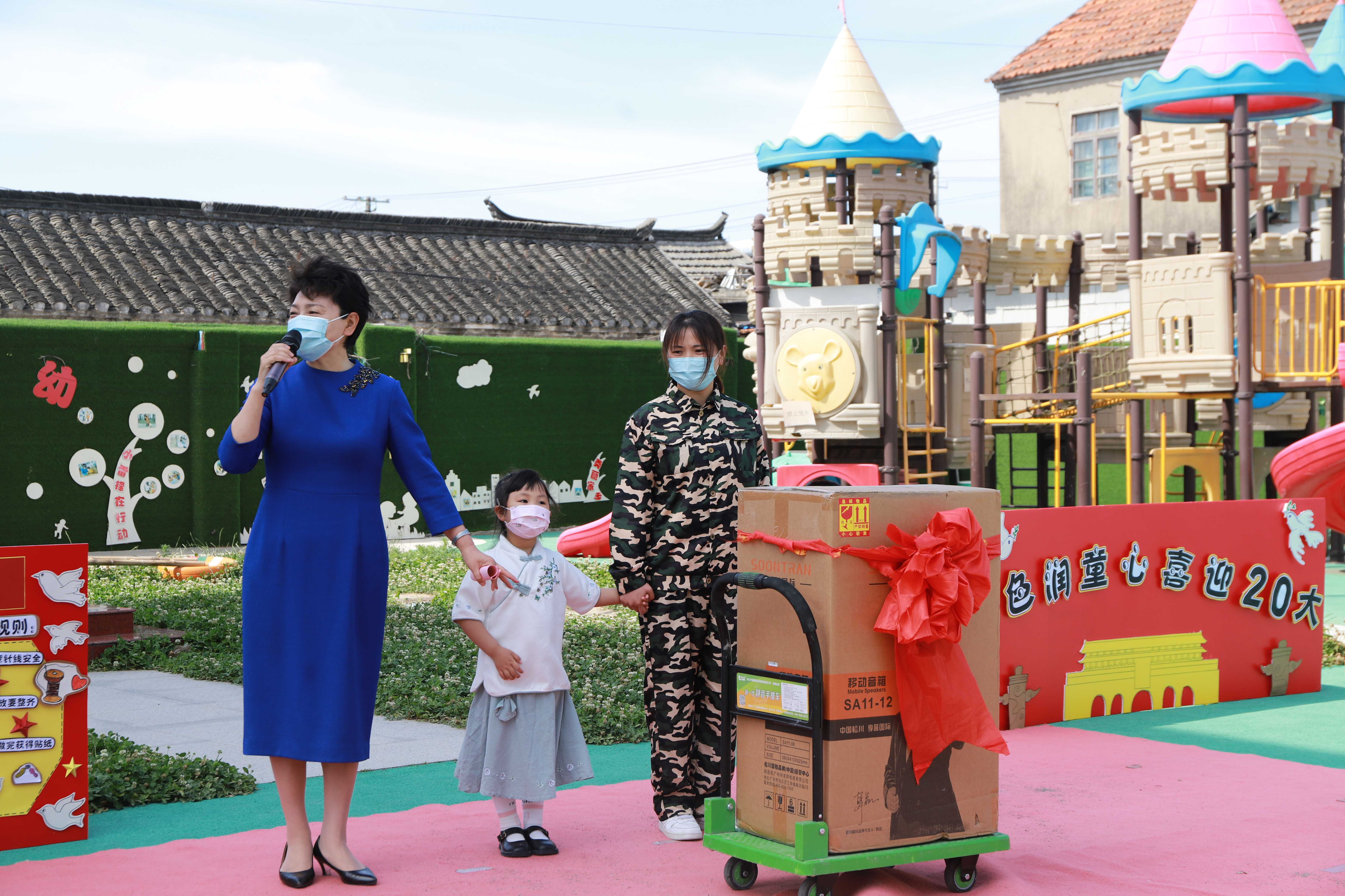 为更好助力活动开展,刘书记向伍佑幼儿园送上了暖心礼物,希望孩子们在“六一”活动中玩得开心、玩得尽兴,还热情邀请小朋友们到盐城幼专大家庭中感受大朋友们的爱心。