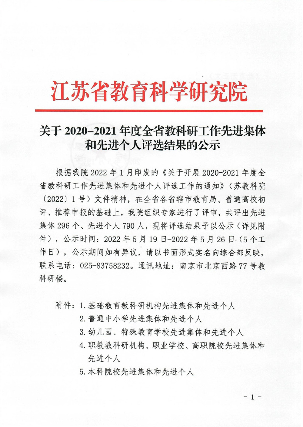喜报:我所荣获2020-2021年度“全省教科研工作先进集体”