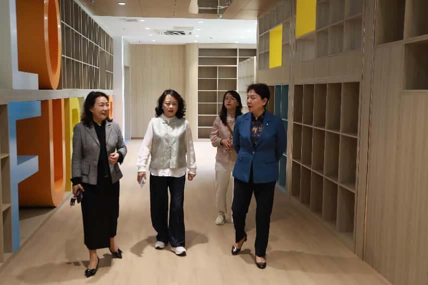 肖琦对杨洁一行的到来表示热烈欢迎,向大家介绍了附属幼儿园的办园背景、办学理念、办学定位、发展愿景等。大家实地参观了幼儿园的特色功能教室、班级教学环境及户外活动区。在随后的座谈交流会上,双方围绕着幼儿园发展方向、特色定位、产教融合、平台共建等内容展开探讨交流。刘书记强调,未来双方将进一步探寻合作,探索产教融合新范式,以附属幼儿园为依托共同推动学前教育事业高质量发展。